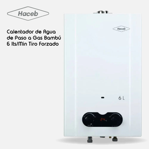 Calentador BAMBÚ HACEB de agua de paso a gas 6 L / min tiro forzado