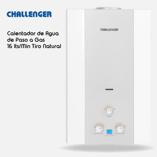 Calentador CHALLENGER de agua de paso a gas 16L / min tiro natural