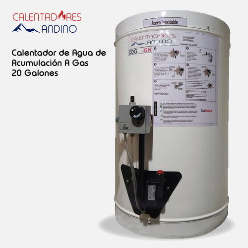 Producto: Calentador de agua de acumulación a gas de 20 galones acero inoxidable