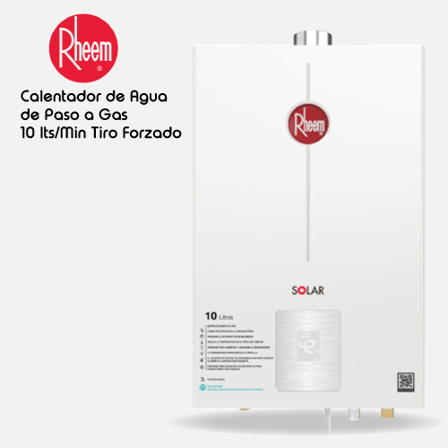 Calentador de agua a gas 10lt tiro Forzado, para que tú y tu familia disfruten de un baño de agua caliente al instante de forma ilimitada y ahorrando energía. Tecnología auto modulante que permite óptimo consumo de gas y mantiene la temperatura constante. Marca americana con altos estándares de calidad, 9 sistemas de seguridad para una mayor durabilidad, encendido automático y control digital que permite regular fácilmente la temperatura del agua. Calentador de agua con cámara de combustión 100% de cobre para una larga durabilidad del equipo, compatible con sistemas solares y de recirculación.